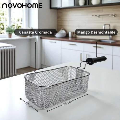 – Canasta para freír cromada con mango desmontable frío al tacto