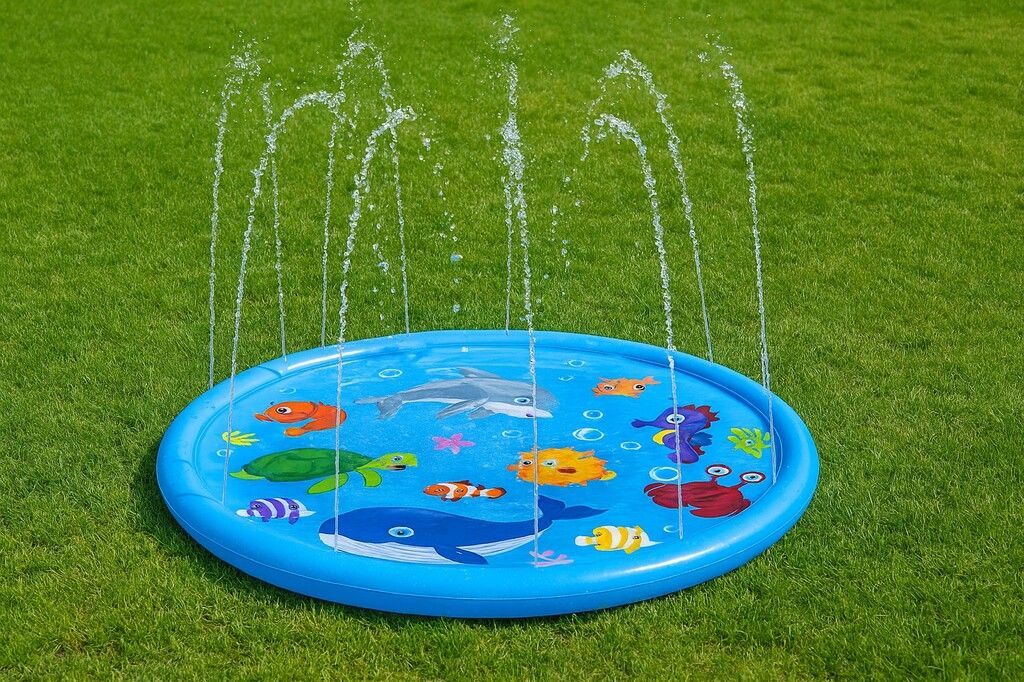 ALFOMBRA CIRCULAR MAGICA DE AGUA CON LINDO DISEÑO MARINO. CUENTA CON SALIDAS DE AGUA SOLO TENES QUE CONECTARLA A UNA MANGUERA PARA QUE LO MAS CHICOS DE LA CASA COMIENCEN A DIVERTIRSE Y A REFRESCARSE EN ESTOS DIAS CALUROSOS. MIDE 170 CM .
