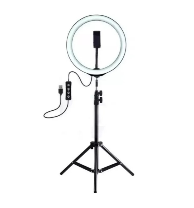Trípode alto de 2.1m 1 soporte para el teléfono Podes ajustar la posición del aro MUCHISIMOS colores de luz intercambiables Incluye Blanco cálido y frio Intensidad regulable Aro con máxima luminosidad