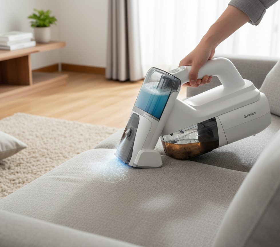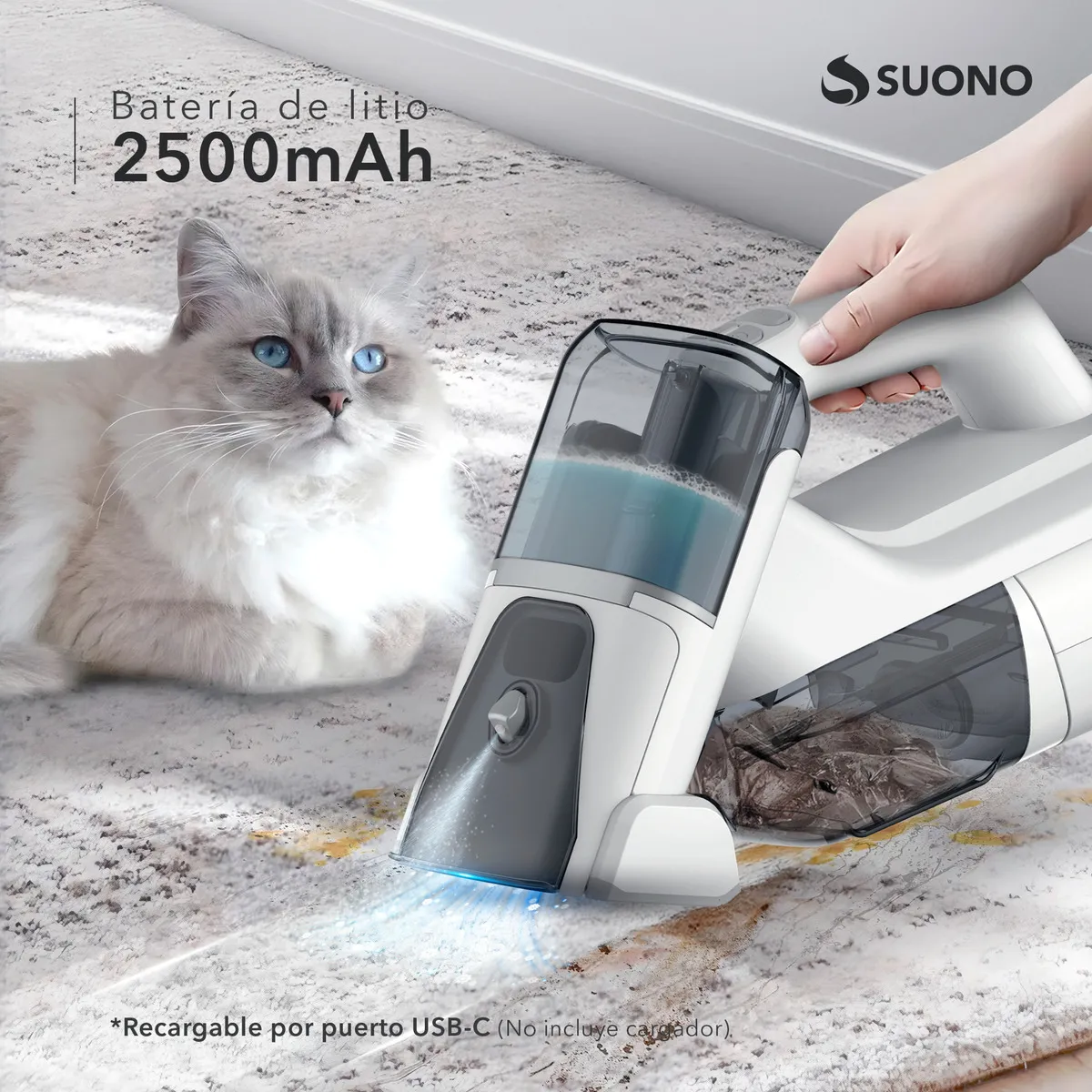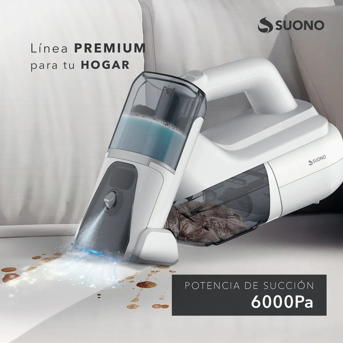 Practicidad y limpieza en cualquier lugar. Con su doble depósito de agua limpia y sucia, la Suono HOG0330 permite pulverizar y aspirar al mismo tiempo, logrando resultados más higiénicos en tapizados, sillones o el auto. Su motor de 100 W ofrece una potencia de succión de 6000 Pa, mientras que la batería de litio recargable por USB-C brinda autonomía para limpiezas rápidas. Compacta y liviana, es ideal para usar en el hogar o fuera de casa.