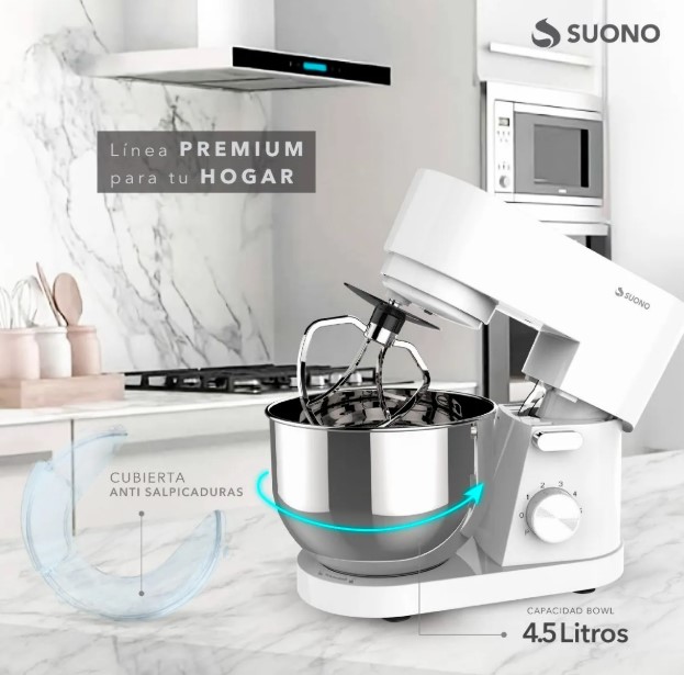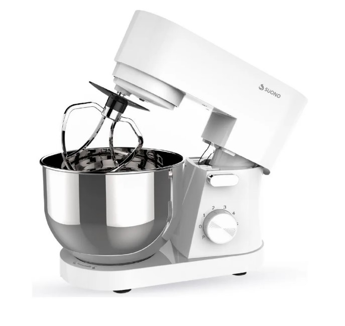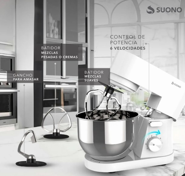 Potencia: 1000W 6 Velocidades + Función Pulsar Bowl de Acero Inoxidable de 4.5L 3 Accesorios para Batir (Globo, Pala, Gancho de Amasar)