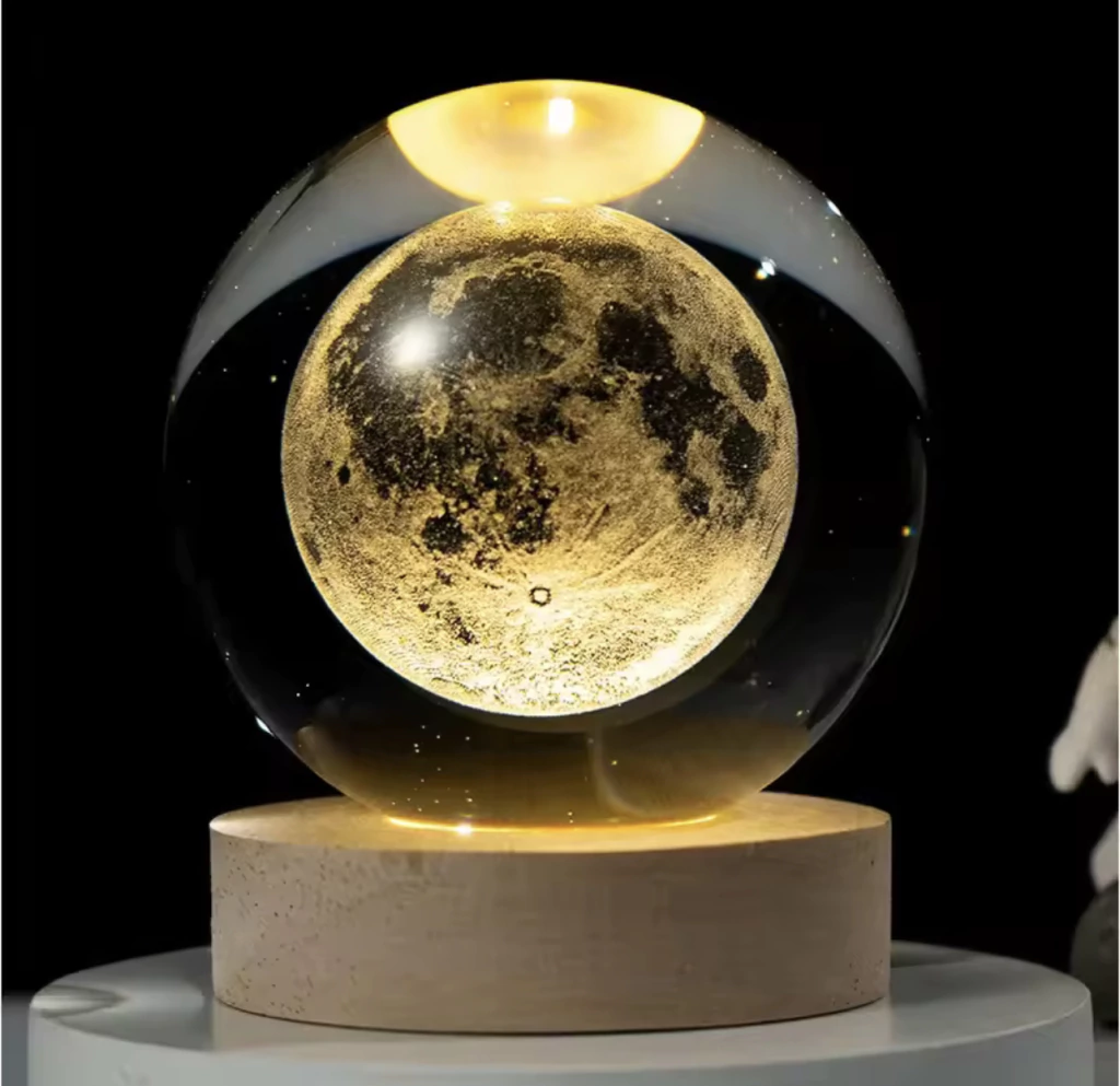 *Material premium: el soporte de la lámpara está hecho de madera maciza y la esfera es de cristal, de excelente calidad. Es ópticamente transparente, lo que lo hace perfecto para mostrar imágenes grabadas en 3D.