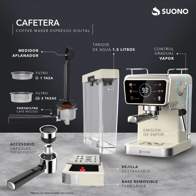 Espumador de leche integrado, perfecto para cappuccinos y lattes cremosos.