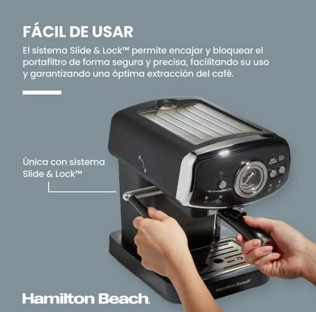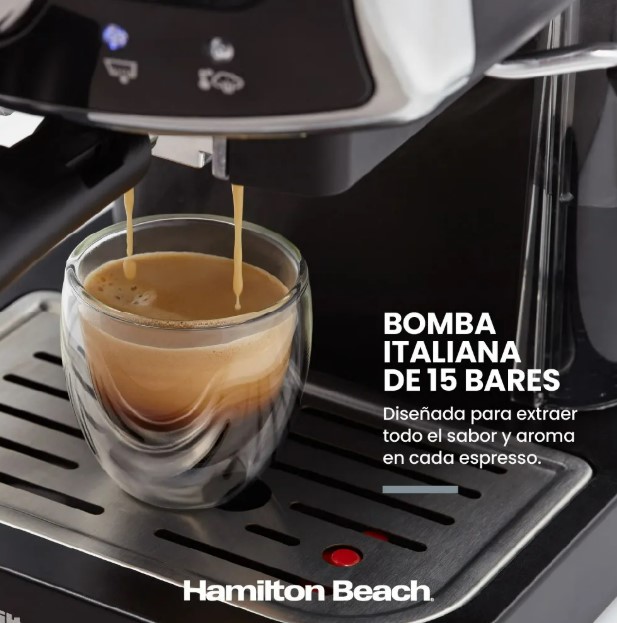 Fácil de usar Auténtico sabor a café con potente bomba de 15 bares Reloj de presión fácil de ver Espume, haga espuma o vaporice la leche con facilidad Shots de espresso personalizados Diseño compacto y retro Fácil de limpiar