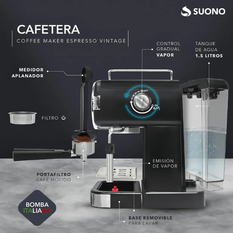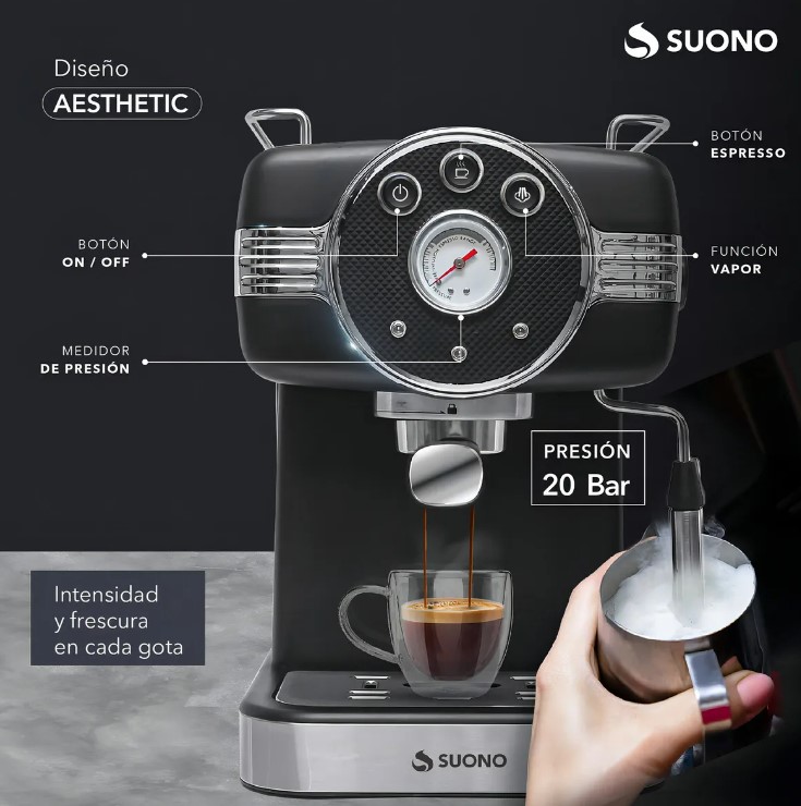 Bomba italiana de alta presión de 20Bar, que asegura una extracción óptima del café.