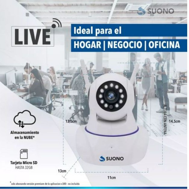 ¡Mantén tu hogar o negocio seguro con la Cámara de Vigilancia IP Suono AYV0049! Esta cámara de seguridad avanzada te brinda tranquilidad las 24 horas del día, los 7 días de la semana, con su tecnología de vigilancia de vanguardia.