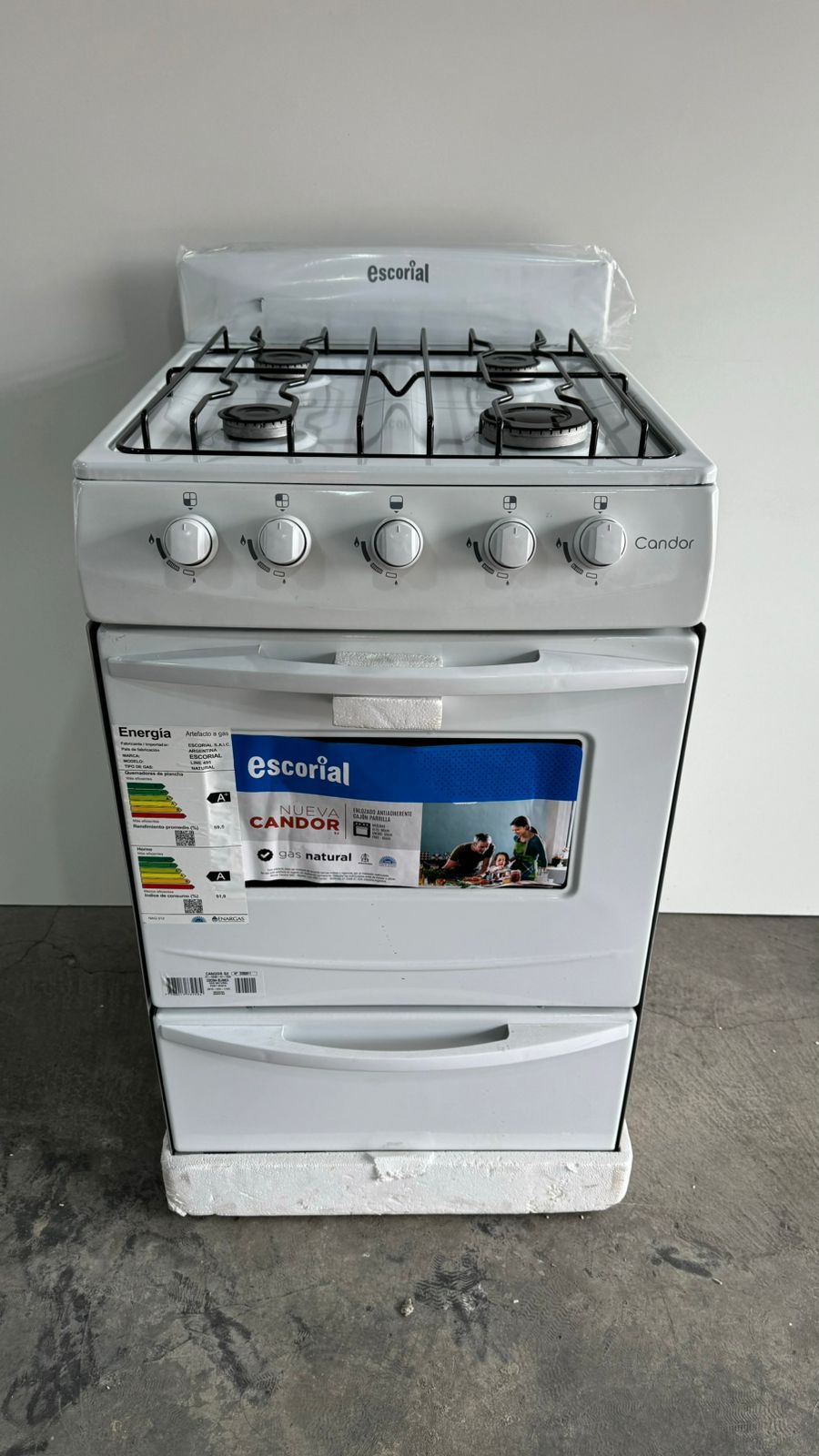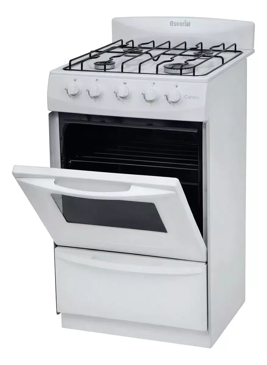 Tipo de puerta del horno: Con visor Cocina de pie. Conexión a gas licuado Posee 4 hornallas. Capacidad: 82.5L. Dimensiones: 525mm de ancho, 930mm de alto y 550mm de profundidad.