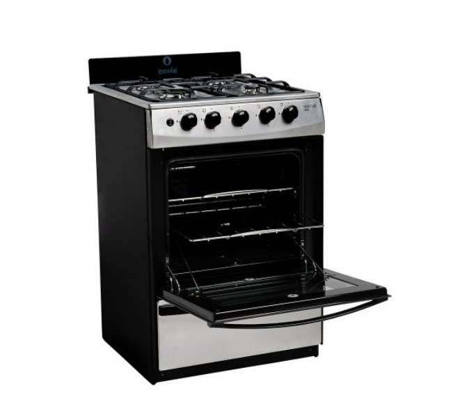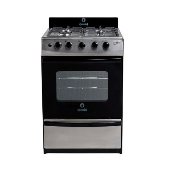 La cocina Escorial Master Style multigas ofrece 4 hornallas: 1 grande y 3 medianas. El interior del horno está enlozado en polvo electrostático y tiene una práctica luz, mientras que en su exterior dispone de puerta con doble vidrio. Por otro lado, posee doble parrilla extraíble y encendido de una mano.