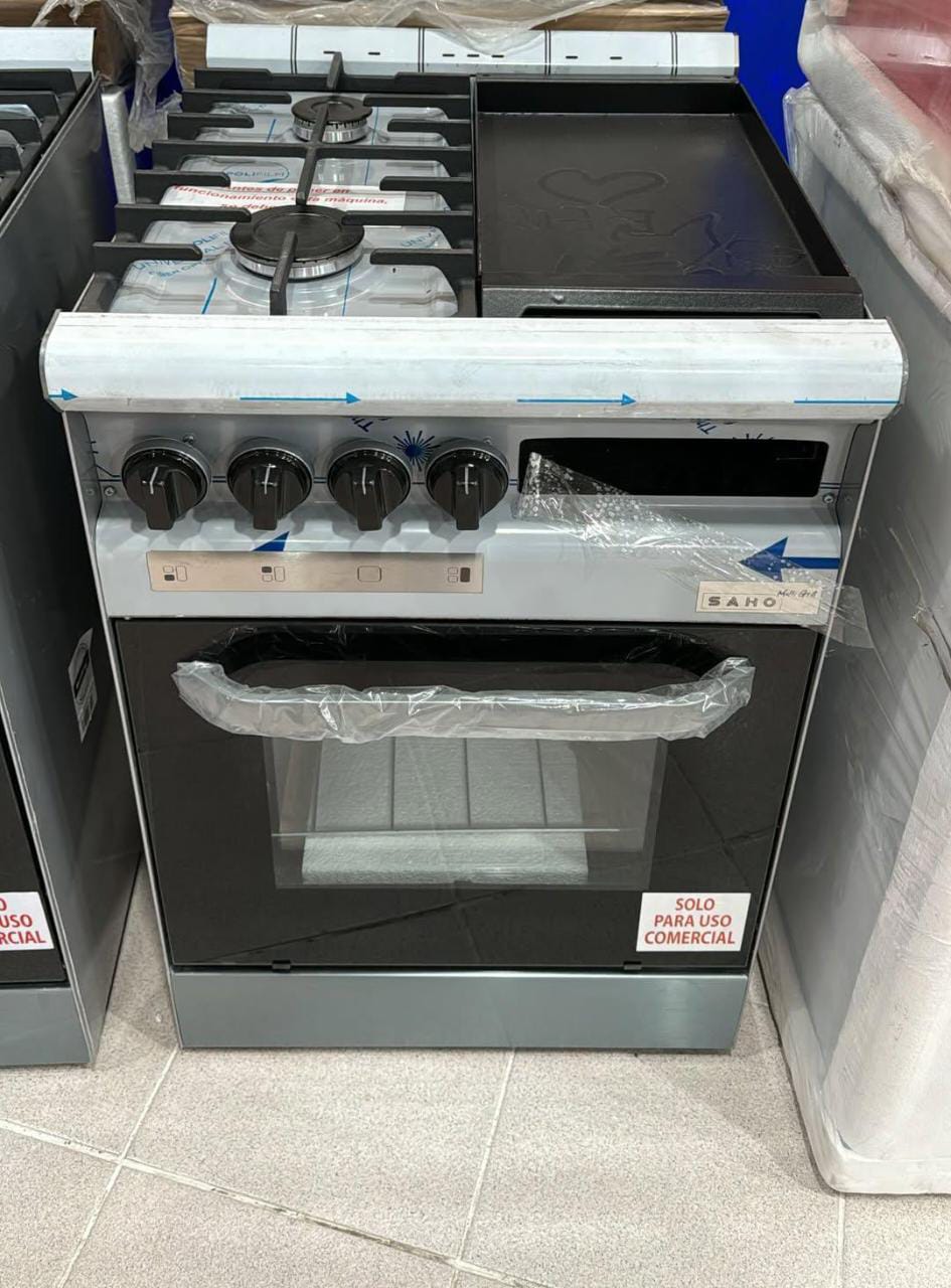 Voltaje: 220V Tipo de puerta del horno: Con visor Cocina de pie. Posee 2 hornallas y plancha con tostador por debajo. Capacidad: 30L. Tipo de encendido: manual. Dimensiones: 55cm de ancho, 85cm de alto y 62cm de profundidad.