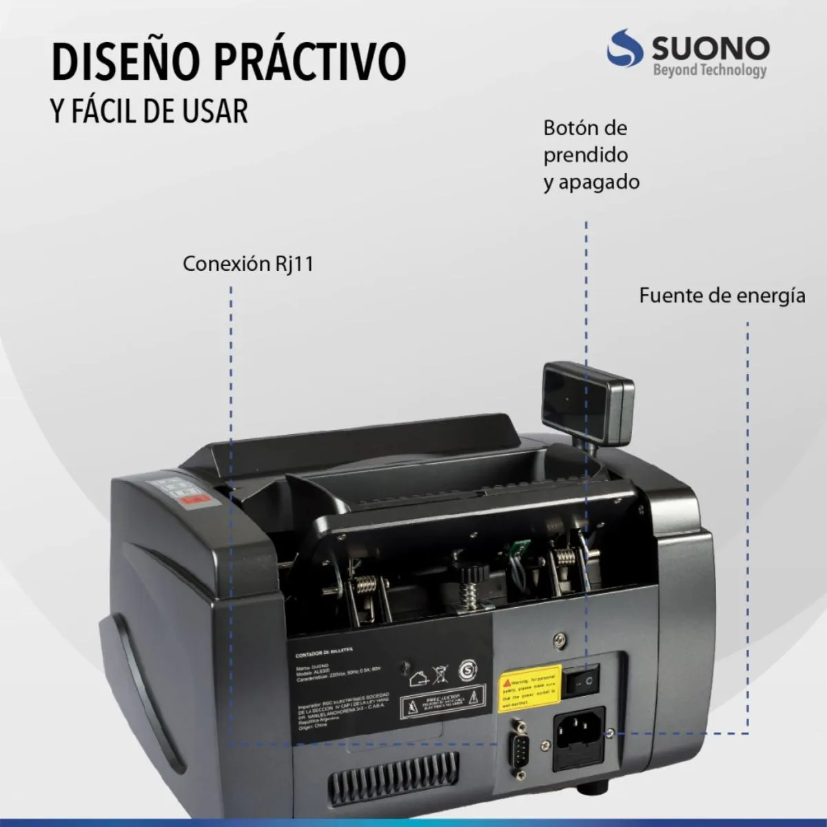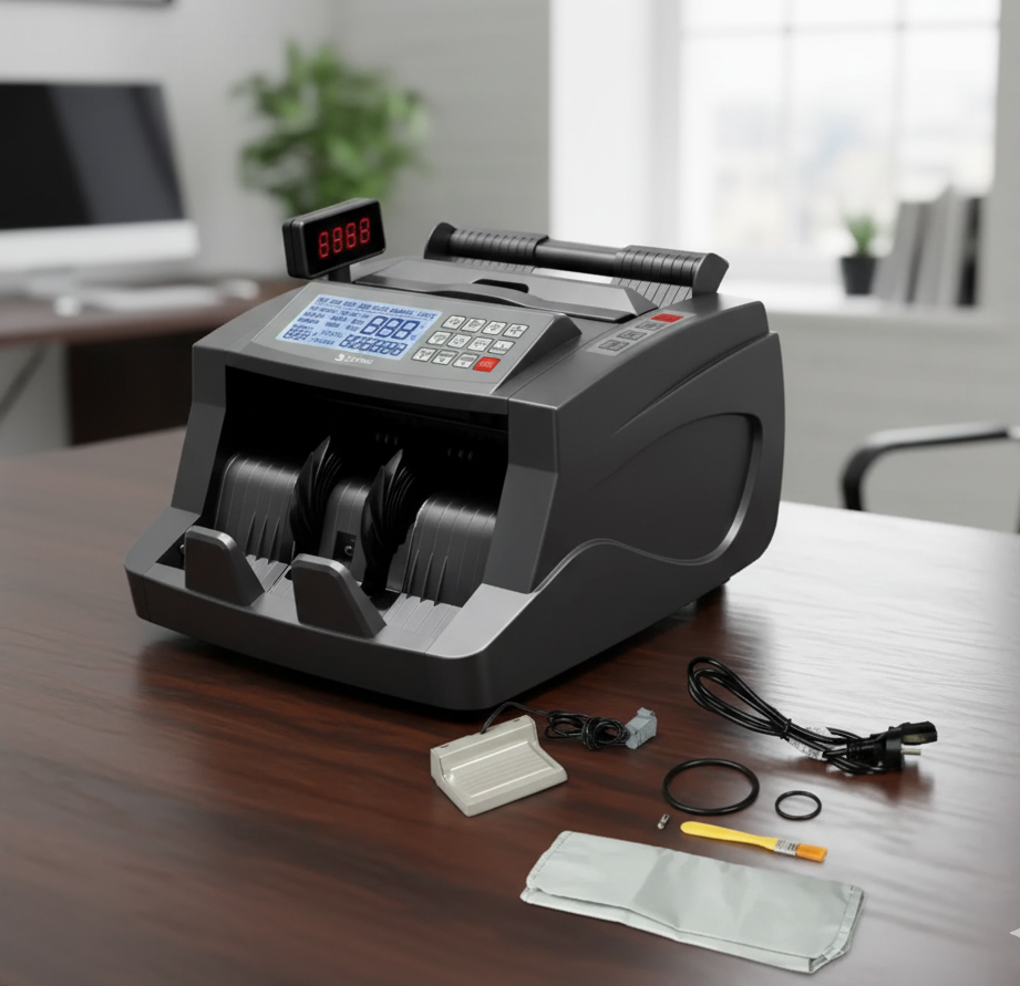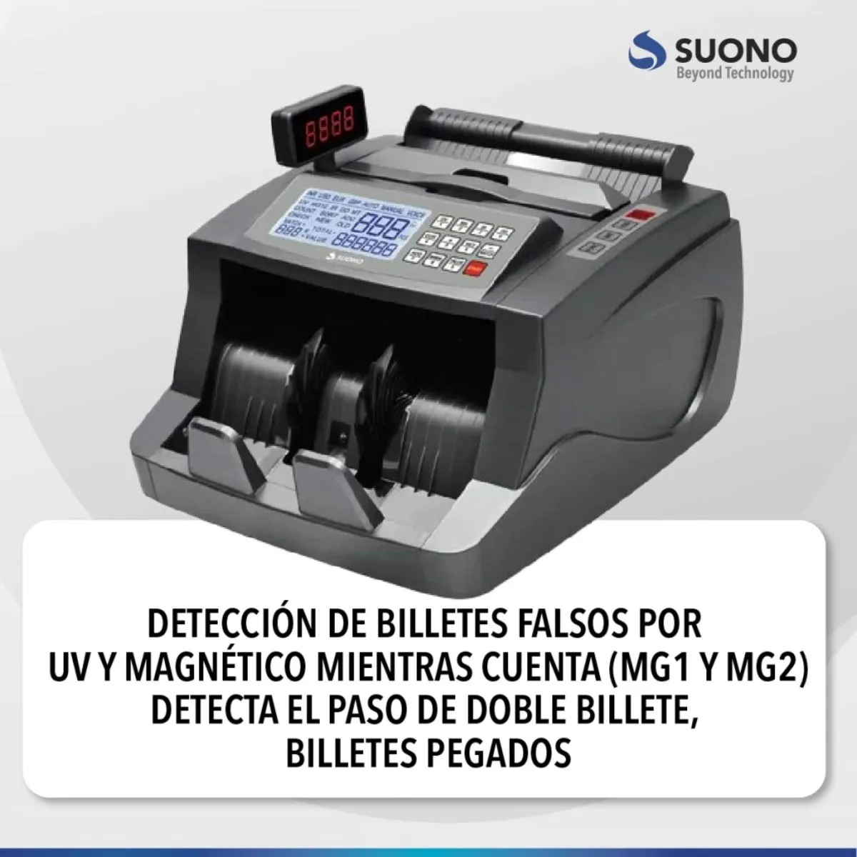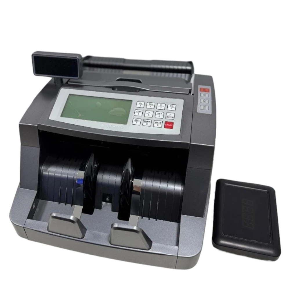 La Máquina Contadora de Billetes Suono es la herramienta ideal para agilizar el conteo de dinero con máxima precisión y seguridad. Su diseño portátil y compacto permite llevarla a cualquier lugar, mientras que su sistema de detección de billetes falsos brinda total confianza en cada transacción. Perfecta para negocios, oficinas y comercios que manejan grandes volúmenes de efectivo.