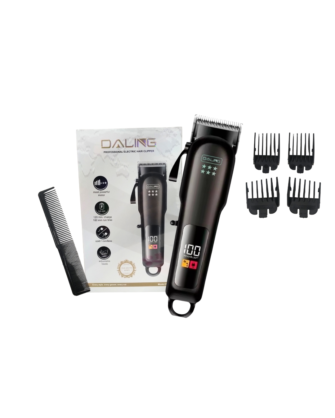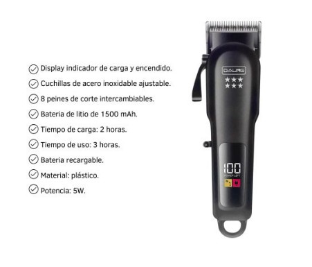 ° Corte rápido y preciso ° Pantalla digital LED ° Motor más potente de 5W ° Hoja de acero inoxidable ° 180 minutos de funcionamiento inalámbrico