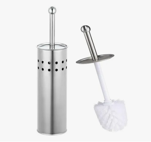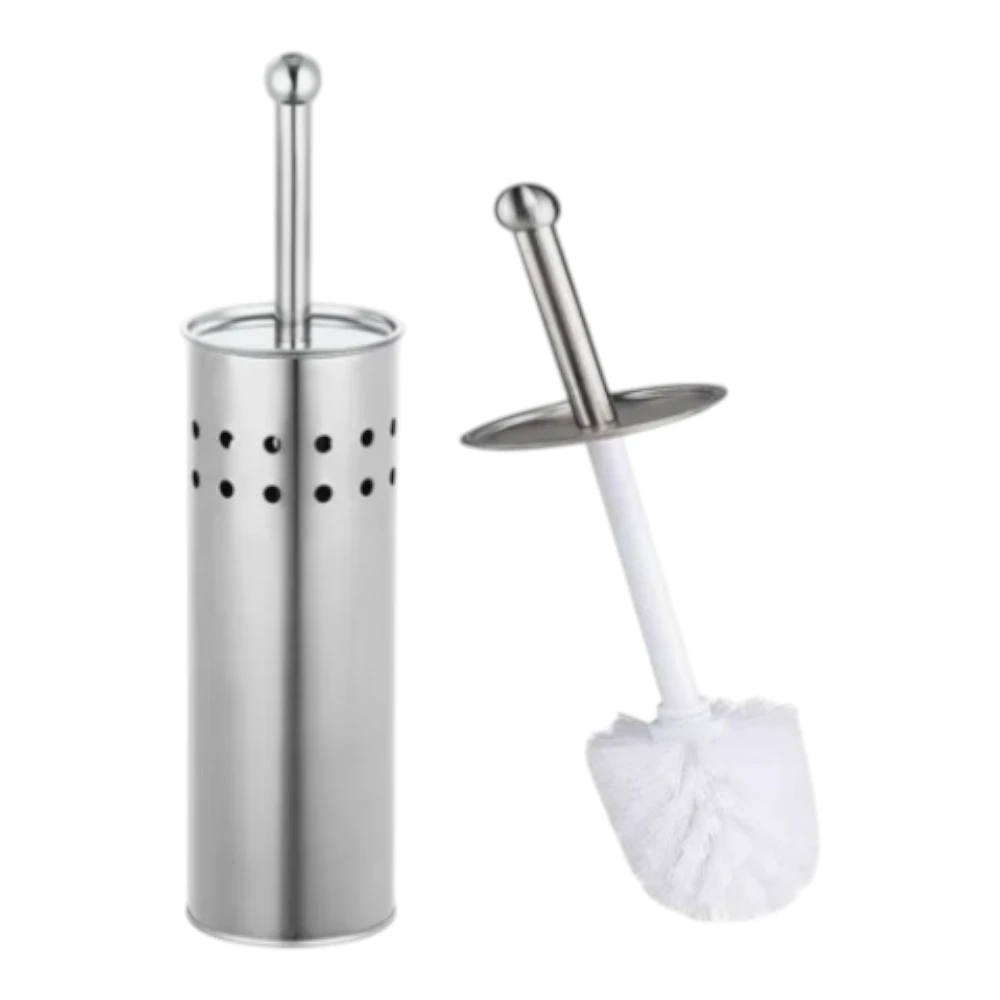 Escobilla para baño de fibra sintetica con porta escobilla de acero inoxidable .