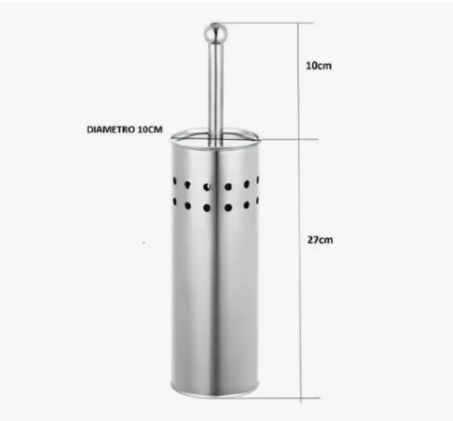 Material : acero inoxidable Escobilla de fibras sinteticas Alto total 37cm Diametro 10cm Altura sin el mango 27cm