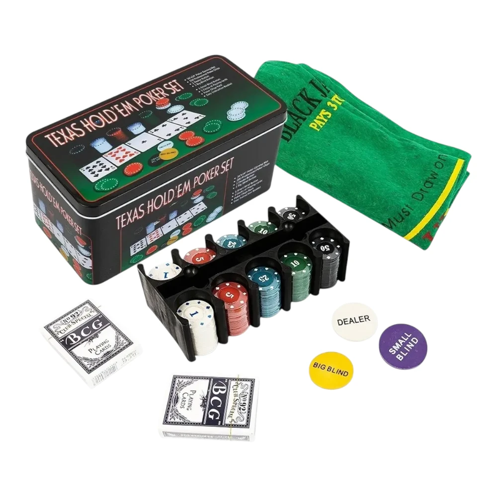 – Juego de póquer de 200 piezas: este juego de póquer cuenta con todo lo que pueda necesitar para llevar la emoción de Las Vegas a su sala de estar. Incluye 200 fichas, 2 juegos de cartas, 1 botón de crupier, 1 botón de ciega grande, 1 ciega pequeña Botón, 1 tapete de póquer y un estuche de aluminio estilo casino.