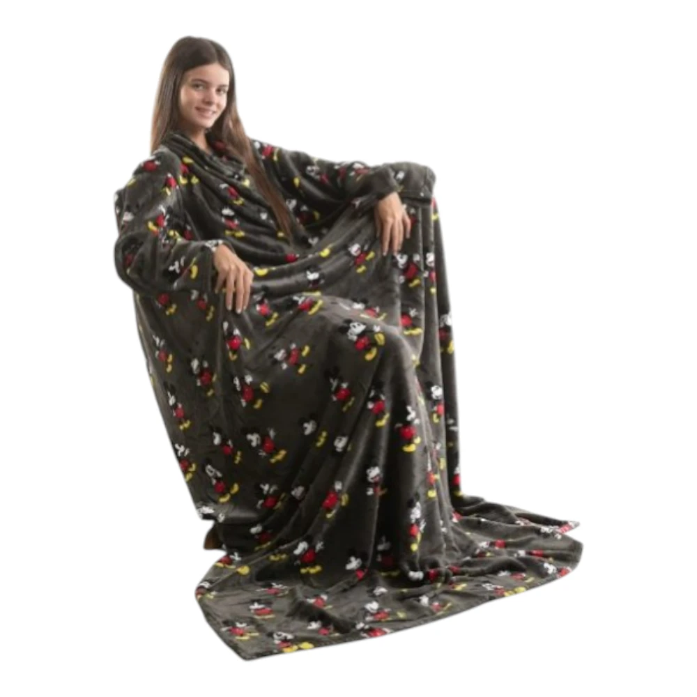 La frazada con mangas es ideal para estar súper abrigado los días de frío pero con los brazos libres y calentitos con el más cute diseño de Mickey