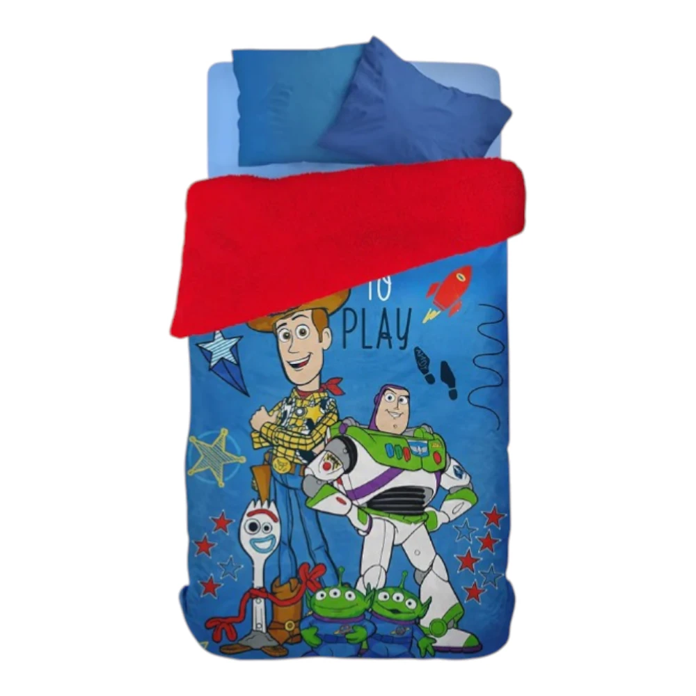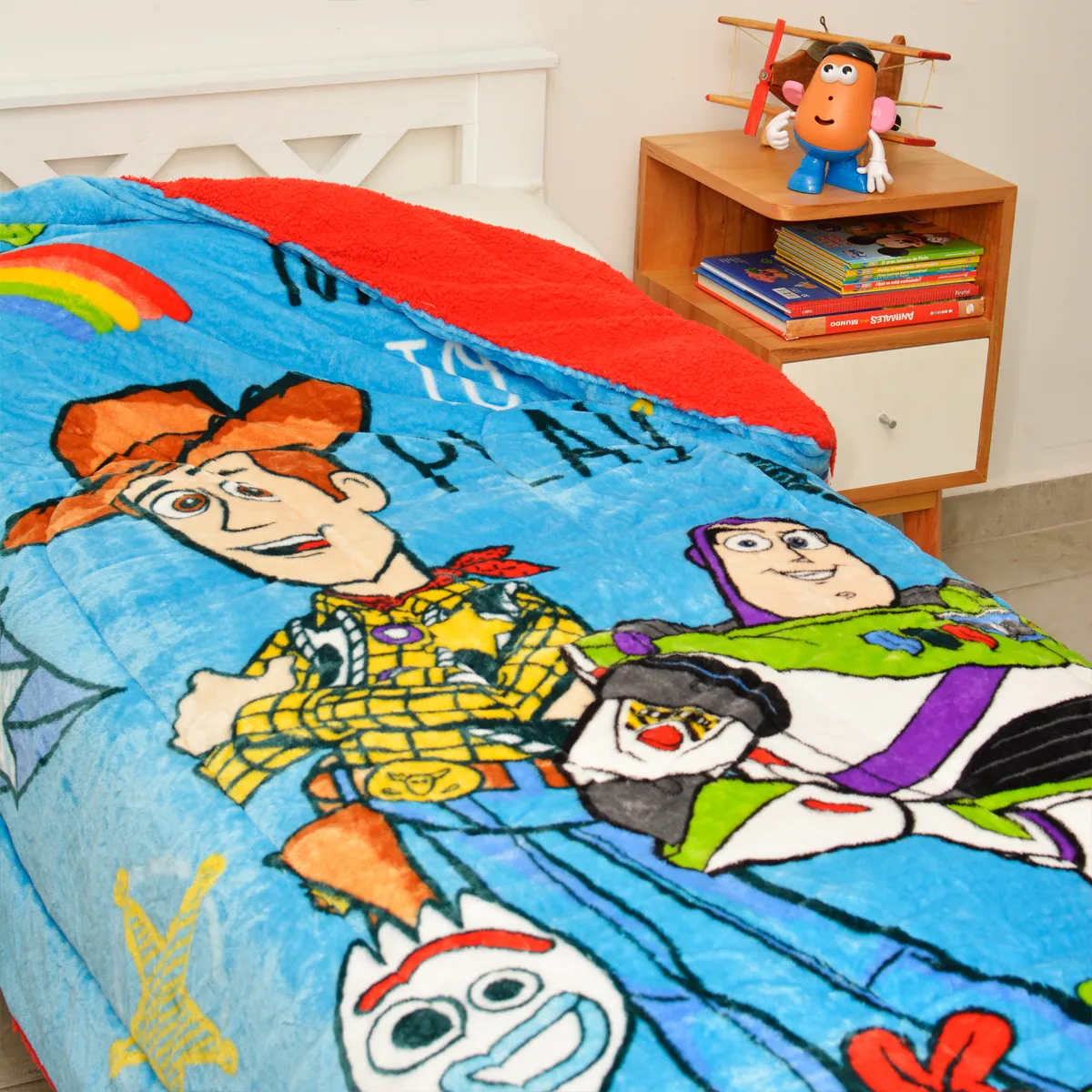 Frazada infantil excepcionalmente suave, mullida, calentita y acogedora para que los chicos se sientan súper abrigados en las noches más frías junto a sus mejores amigos Woody, Buzz y Forky