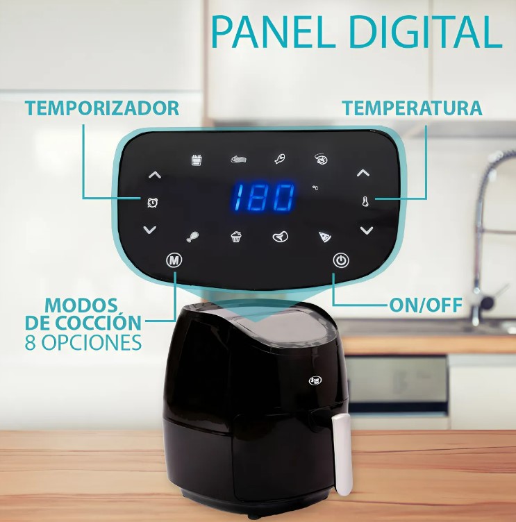 • Cocción Saludable: Cocina alimentos sin aceite, logrando platos crujientes y deliciosos con hasta un 80% menos de grasa.