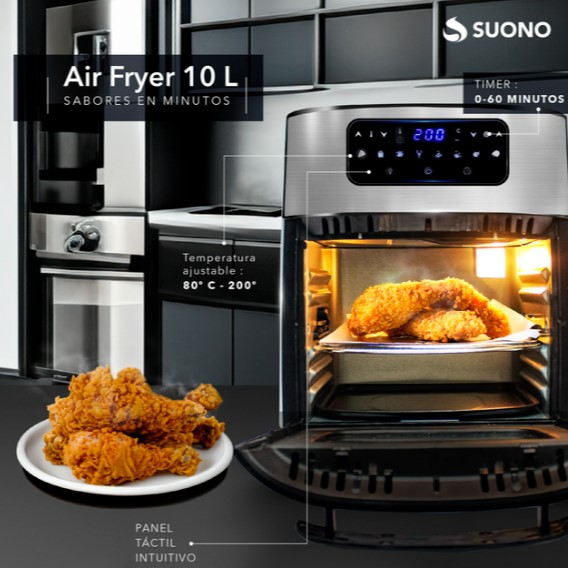 Capacidad XL de 10L, ideal para grandes porciones y comidas familiares.