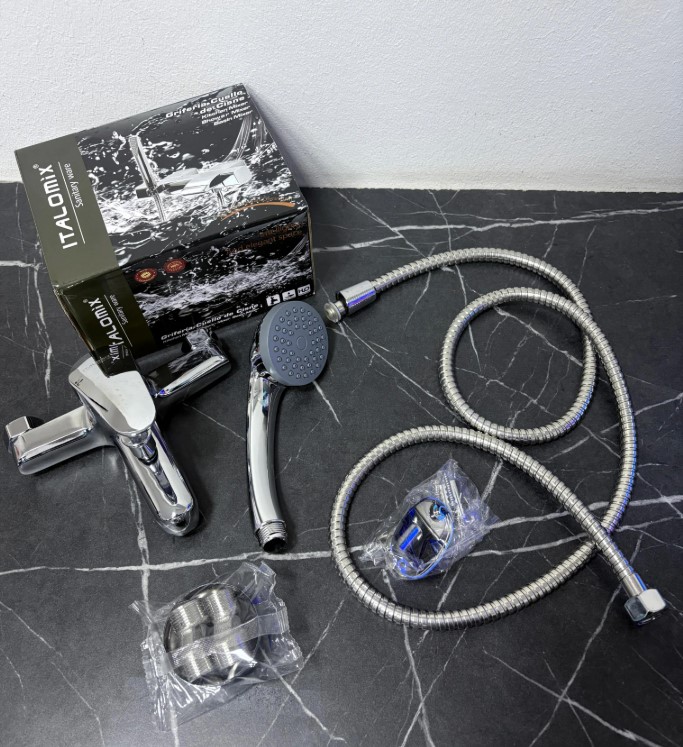 Acabado: Cromado Lugar de colocación: ducha. Control monocomando. Fabricada en metal. Con mango cuadrado. Su instalación requiere 2 orificios. Ducha de mano incluida. Montaje de pared. Incluye manguera conectora.