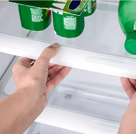 Estantes con altura regulable para brindar mayor comodidad y aprovechamiento del interior del refrigerador. Dos estantes con cuatro niveles de altura que permiten adaptar el espacio de guardado a las diferentes necesidades sin removerlos.