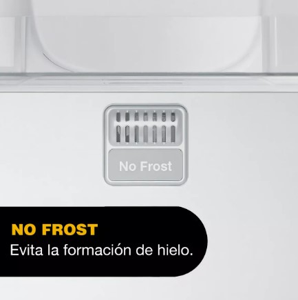 El Sistema No Frost está compuesto por el compresor que enfría y un ventilador que distribuye el aire de forma homogénea en el refrigerador y freezer, a traves de sensores y sistemas de ventilación. No genera escarcha porque la humedad no se condensa y no requiere de descongelado manual.
