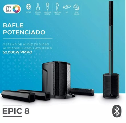 Disfruta de una experiencia de sonido envolvente y de alta calidad con el Bafle Potenciado Ken Brown Epic-8 TWS. Este sistema de sonido de 5 vías cuenta con una potencia de salida de 140 W RMS, lo que garantiza un audio potente y nítido en todo momento. Con 5 parlantes, incluyendo 4 de 2.5 pulgadas y un subwoofer de 8 pulgadas potenciado, este bafle en formato torre ofrece una distribución equilibrada del sonido en cualquier espacio.