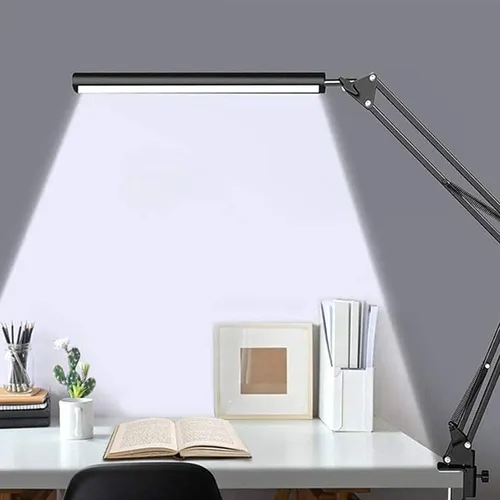 Iluminá tu espacio de trabajo con esta lámpara de escritorio articulada, perfecta para estudiar, leer o trabajar con la computadora. Su brazo flexible permite ajustarla en distintas posiciones para dirigir la luz justo donde la necesitás.