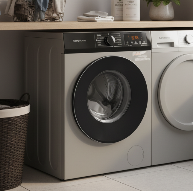 El lavarropas automático Kanji KJH-WMCFSL8K combina tecnología inverter con diseño moderno en color silver, ofreciendo eficiencia energética y un funcionamiento silencioso.