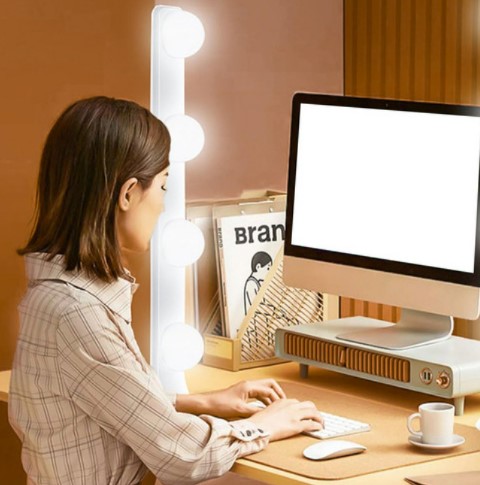 Brillante: cuenta con 4 lámparas, mejora eficazmente el brillo circundante, proporciona suficiente brillo durante la transmisión en vivo y muestra más detalles durante el maquillaje.