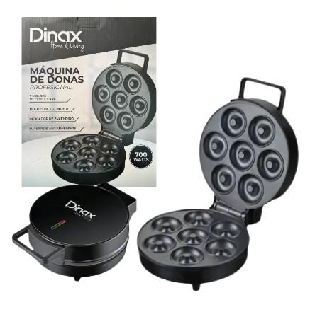 Permite preparar hasta 7 donas en cada uso Potencia: 700W Superficie de cocción antiadherente Con indicador luminoso Moldes de 5,5 cm