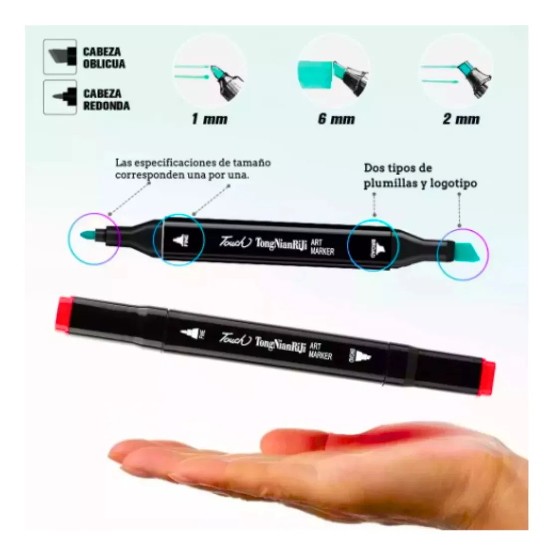Cada marcador cuenta con dos puntas: una fina y una de cincel, lo que permite realizar una variedad de técnicas de dibujo y sombreado. La tinta de alta calidad se seca rápidamente y proporciona una rica saturación de color, permitiendo que los colores se coloquen de manera limpia, suave y uniforme. Las puntas comparten un solo depósito de tinta, asegurando una combinación de color perfecta cada vez que se utilizan.