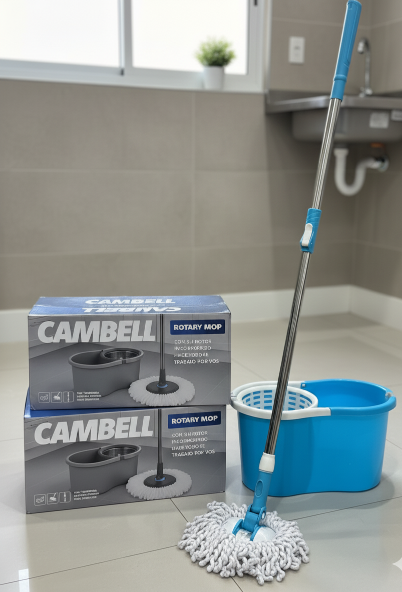 Ideal para aquellos que valoran la funcionalidad y el diseño, la Mopa Cambell no solo es práctica, sino que también cuenta con un atractivo color celeste que se suma a la estética de cualquier hogar. Esta mopa es perfecta para quienes buscan optimizar su tiempo de limpieza, permitiendo disfrutar de un espacio limpio y ordenado sin esfuerzo adicional.