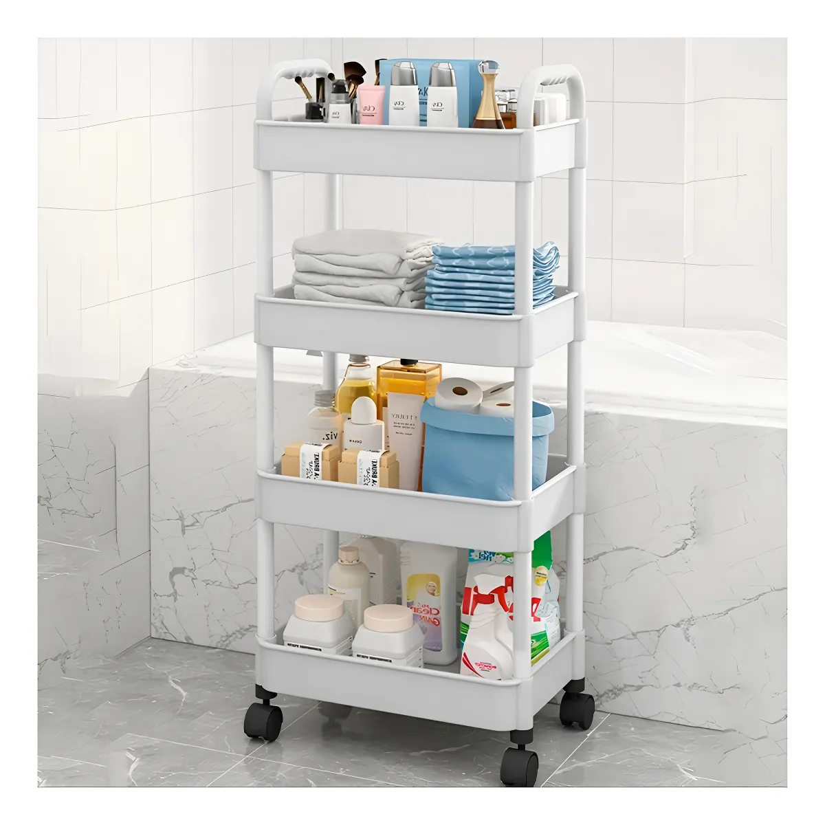 Este carrito organizador de alacena estante de almacenamiento con ruedas cuenta con 4 capas de gran capacidad.