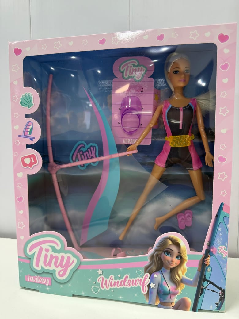 «La TINY MUÑECA WINDSURF CON ACCESORIOS es la compañera ideal para las pequeñas aventureras. Con una altura de 30 cm, esta muñeca articulada presenta un diseño característico que invita a los niños a crear sus propias historias. Su atractivo personaje femenino, equipado con todo lo que necesita para disfrutar del viento y las olas, promete momentos de juego creativo y emocionante.