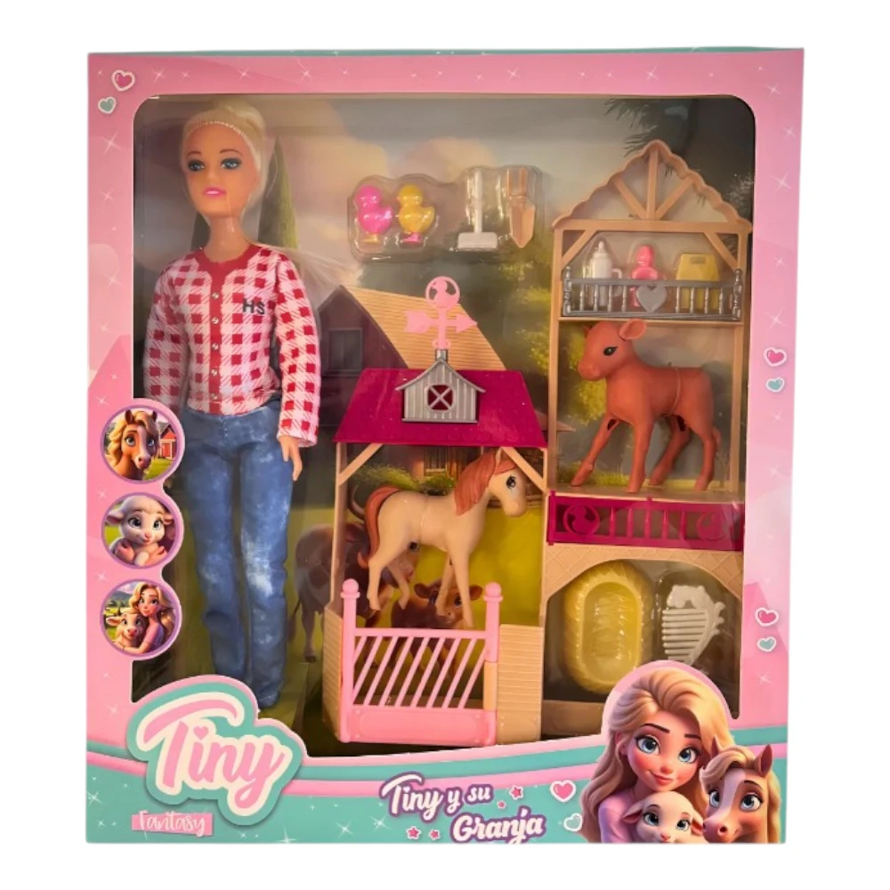 Este encantador set incluye a la muñeca Tiny y todo lo necesario para vivir aventuras rurales llenas de imaginación.