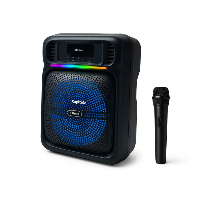 Parlante Portátil Bluetooth KTS-2168 de 8 pulgadas con sonido potente. Incluye soporte para micrófono, Bluetooth, múltiples entradas (USB, TF, AUX, FM) y batería recargable. Diseño compacto y fácil de transportar