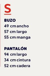 BUZO: 49 cm ancho; 57 cm largo; 55 cm Manga