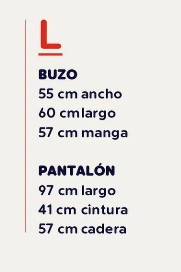 Contiene un Buzo de Corderito con bordado y un Pantalón Flannel. Talle L: BUZO: 55 cm ancho; 60 cm largo; 57 cm Manga PANTALON: 97 cm largo; 41 cm cintura; 57 cm cadera