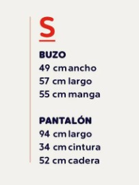 BUZO: 49 cm ancho; 57 cm largo; 55 cm Manga