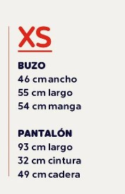 BUZO: 46 cm ancho; 55 cm largo; 54 cm Manga
