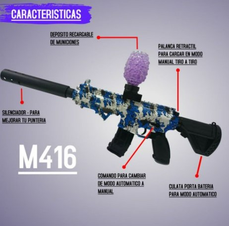 Ametralladora de juguete automáticas Modelo M416, funciona con balas de hidrogel.