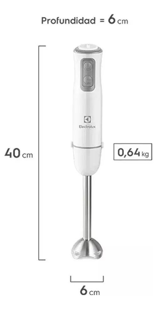 Frecuencia: 50 Hz. Voltaje: 220V. Potencia de 850 watts. Sus cuchillas son de acero inoxidable. Incluye accesorios. Varilla de acero inoxidable. Pesa 640 g. Ideal para todo tipo de preparaciones.