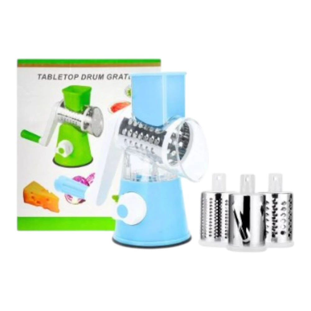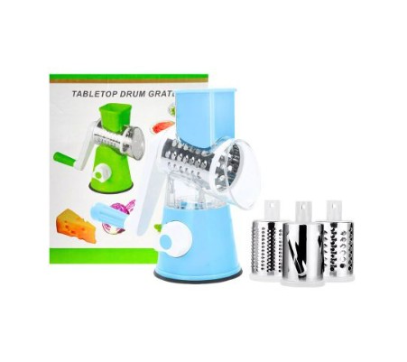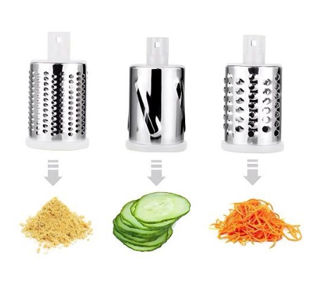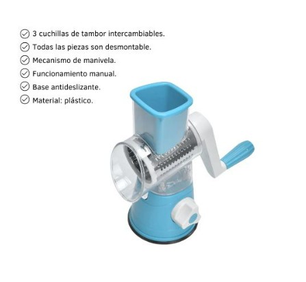 – Incluye 3 tambores de corte diferentes e intercambiables, permitiéndote elegir el tipo de rallado que necesitas.