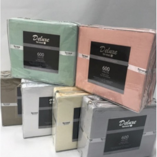 SABANAS TERRENAL DELUXE KING Sábana Superior: 280×260 cm. Sábana Ajustable: 200X200X35. Funda de 50×100 cm . Composicion: 100% Cotton Touch Bamboo – 600 Hilos.