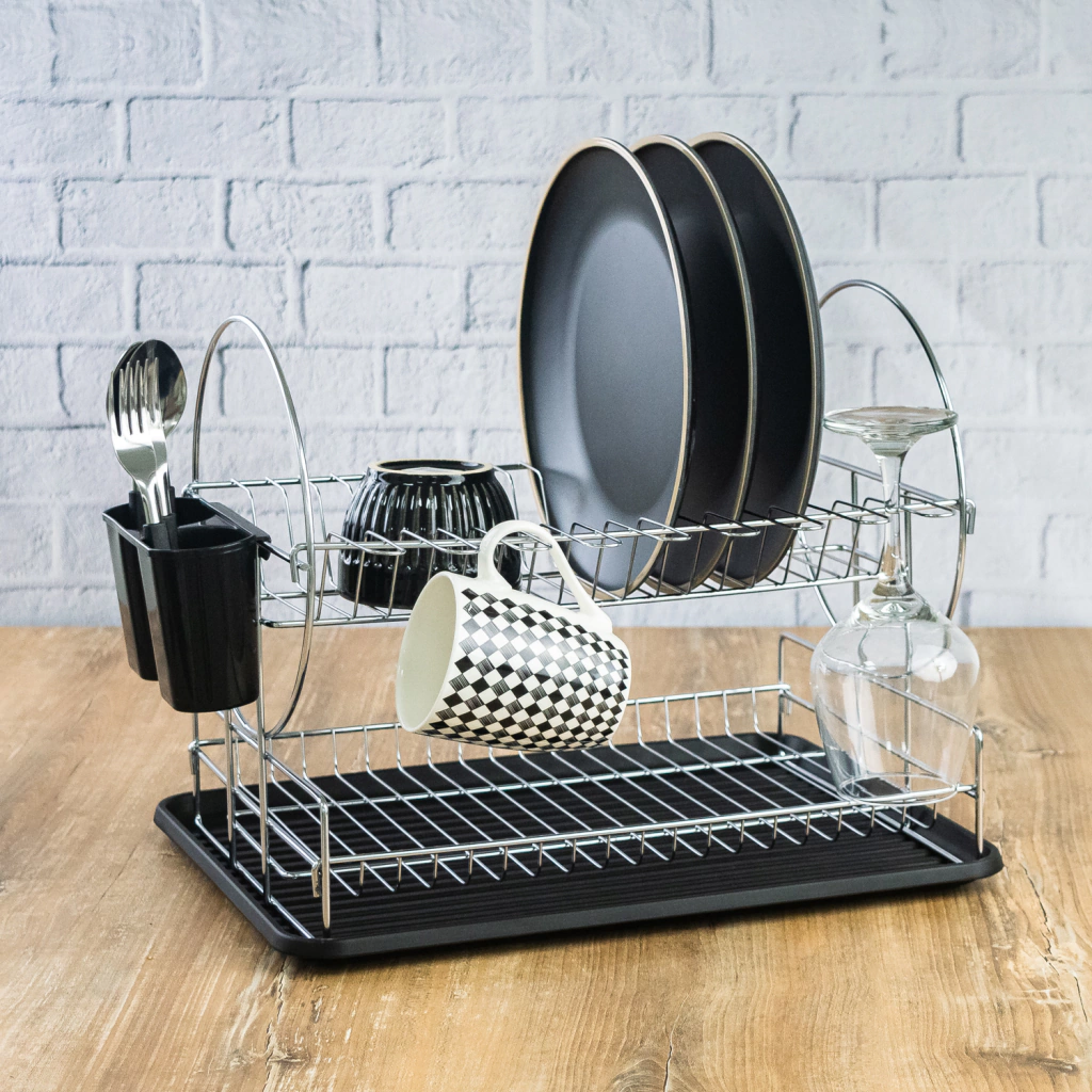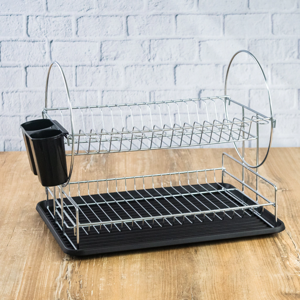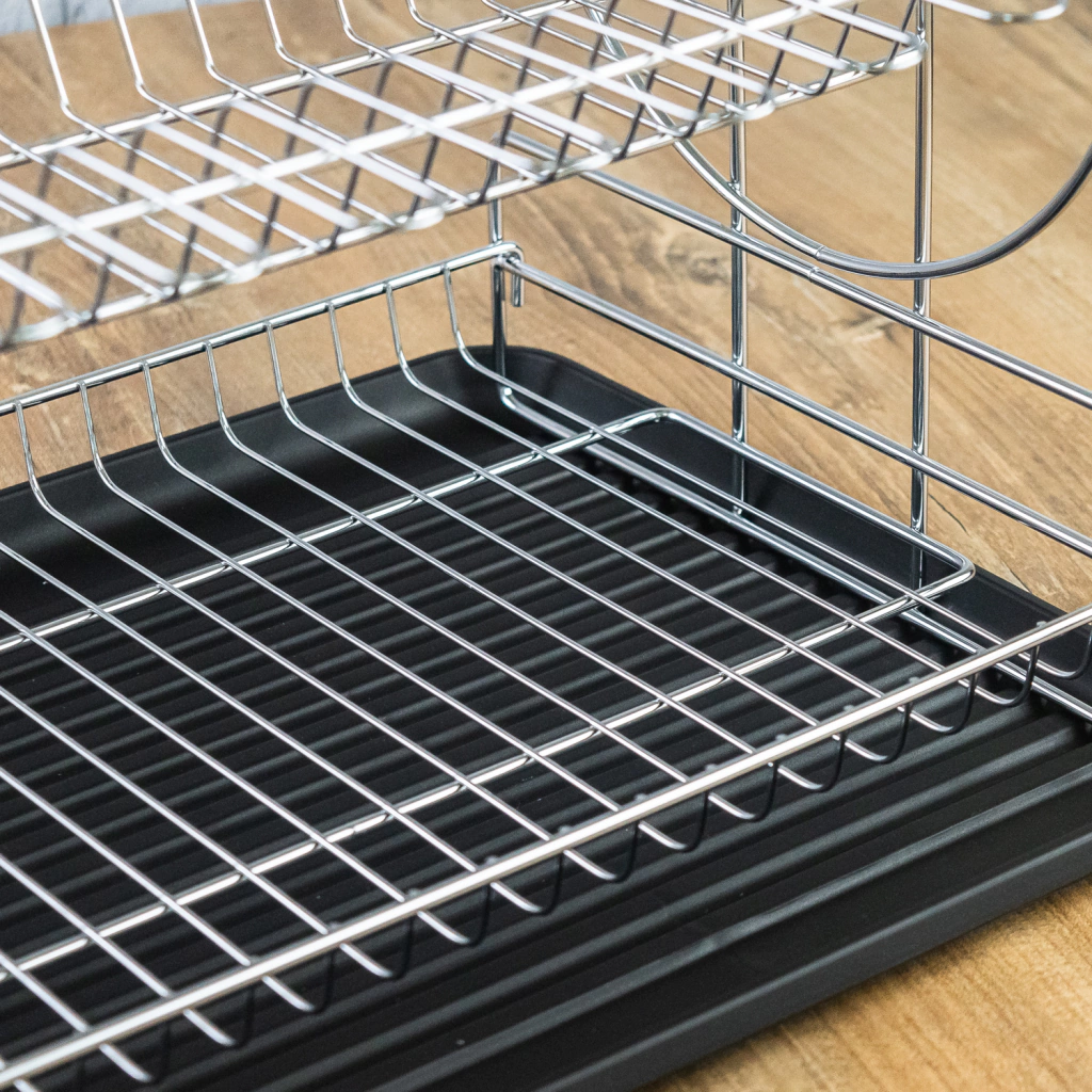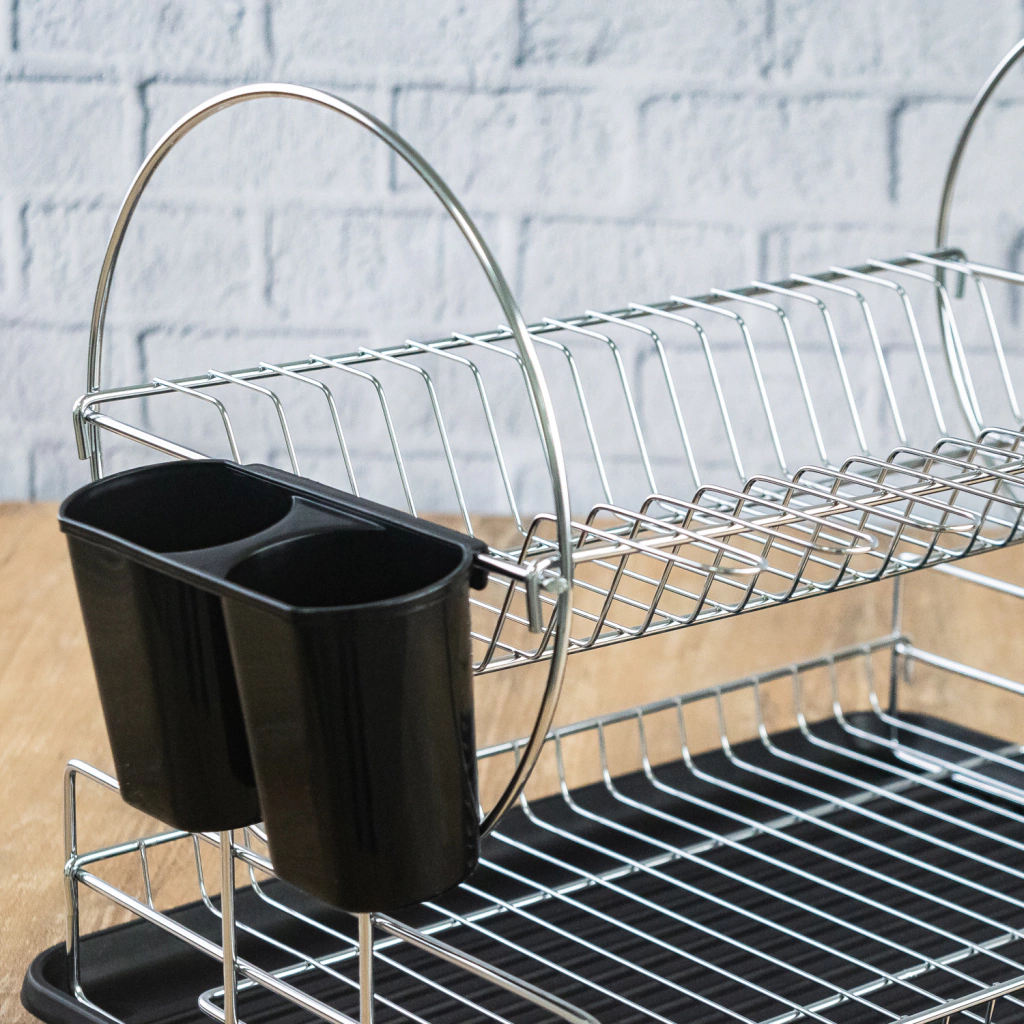 Secaplato de dos pisos en cromo, perfecto para optimizar el espacio en tu cocina. Medidas: De alto 48cm, de profundidad 32.5cm y de ancho 32.5cm.