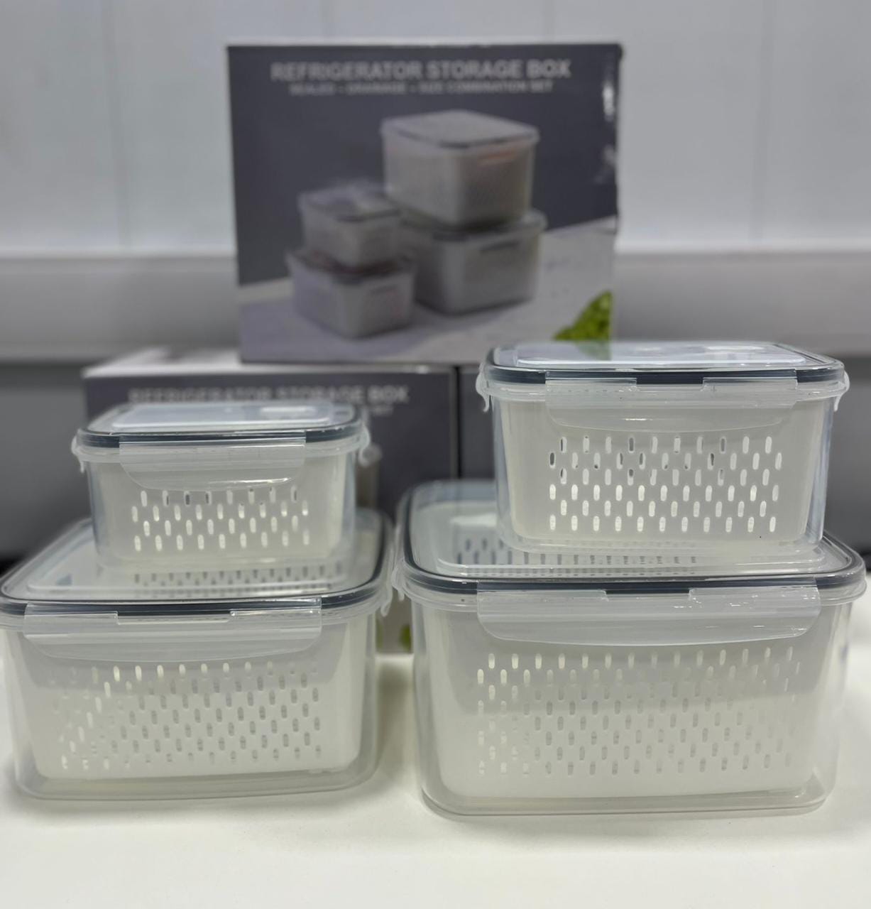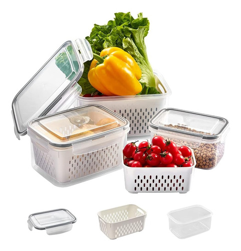 * Contiene 4 tupper plasticos herméticos con colador para frutas y verduras