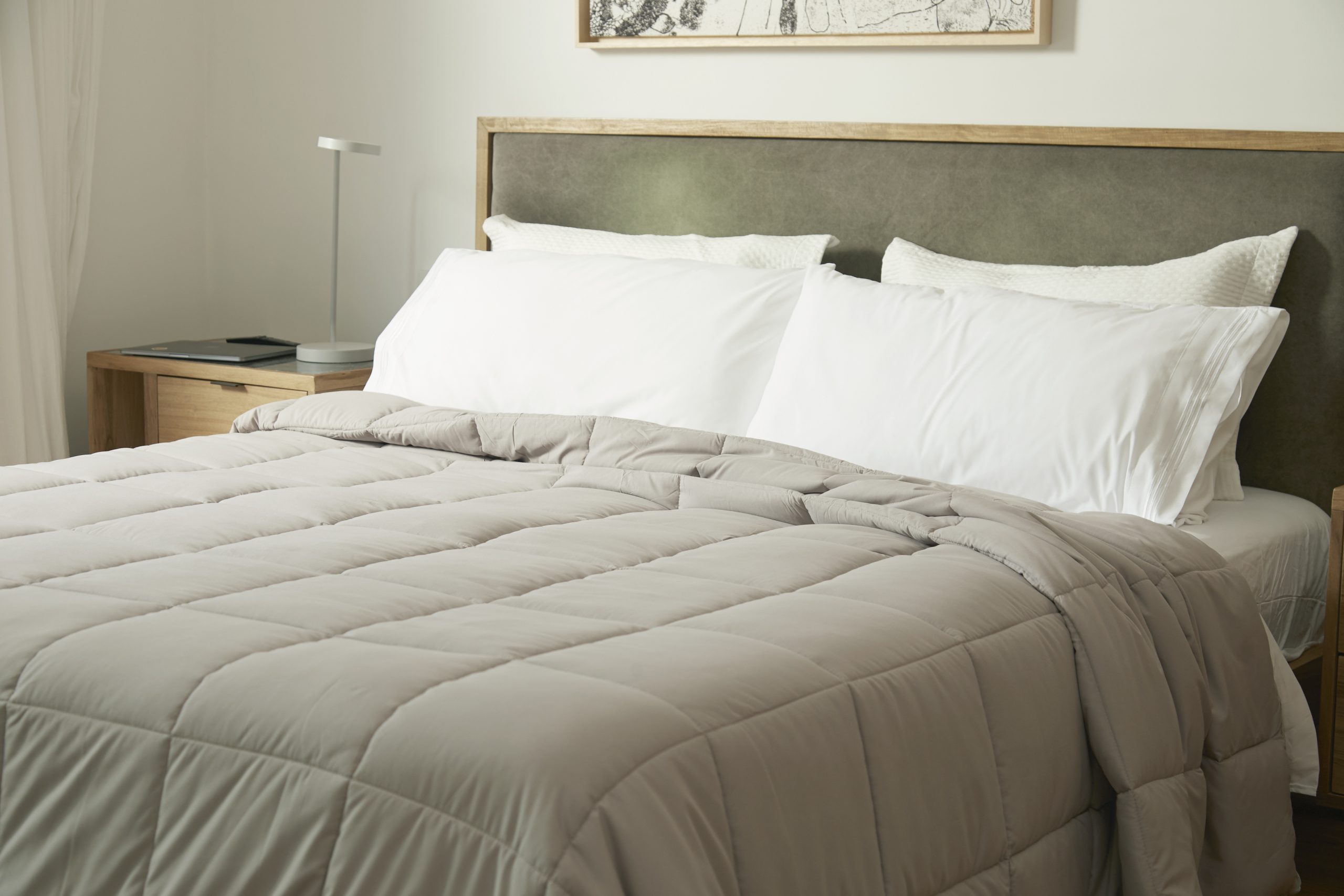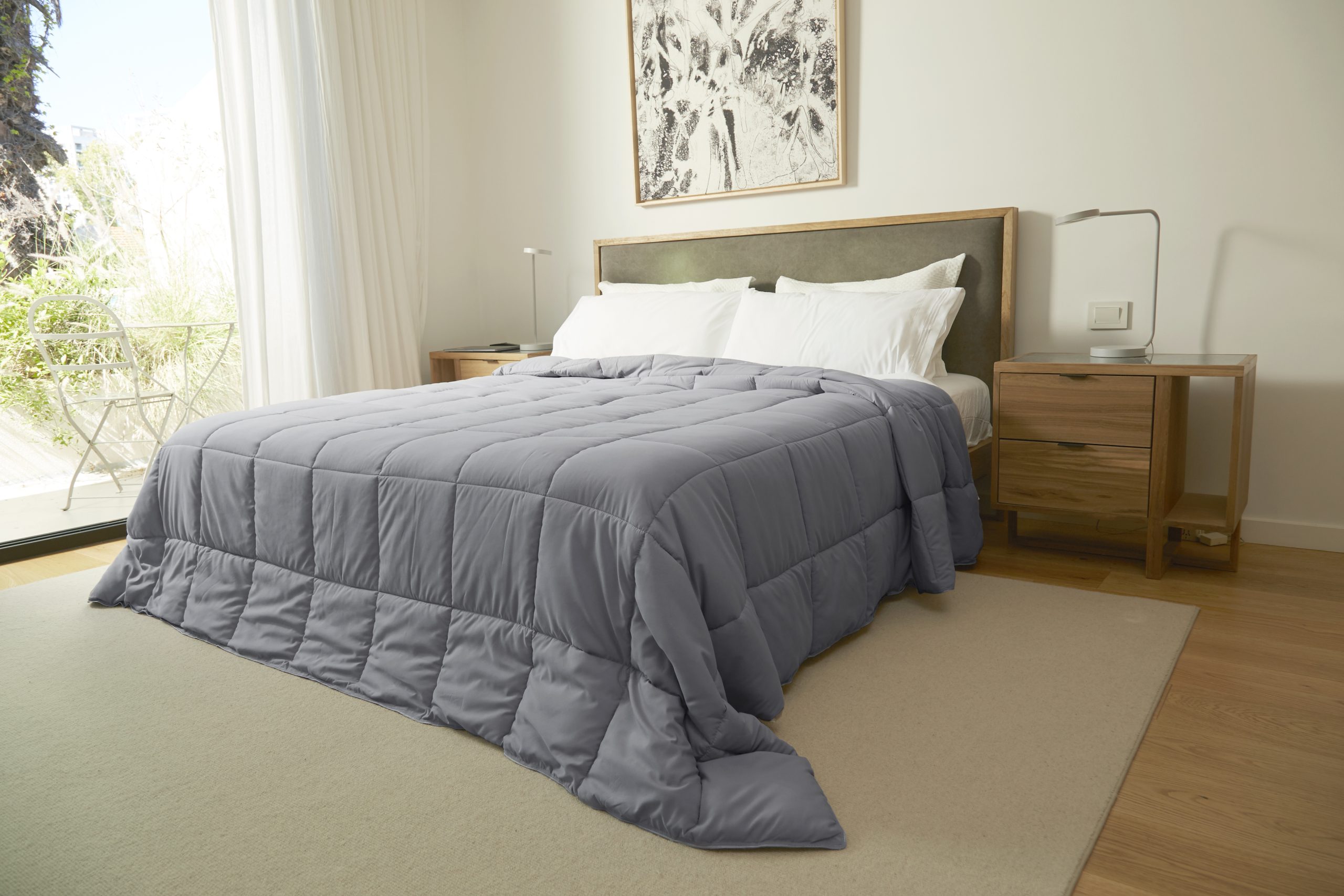 Tamaño: King Size Medida: 260 x 280 Cms. (Para camas de hasta 200 x 200 Cms.) Composición: 100% Poliéster Colores: blanco, crudo, rosa palido, gris amianto, gris oscuro.