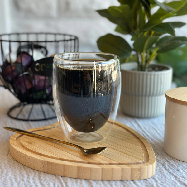 Vaso de Vidrio de Doble Pared, ideal para disfrutar de tus bebidas favoritas. Fabricados en vidrio borosilicato, este vaso es perfecto para mantener la temperatura de tus bebidas, ya sea un delicioso café, un cortado, jugos frescos, té o un capuchino. Con una capacidad de 350ml, su diseño elegante y moderno se adapta a cualquier ocasión. Cada vaso mide 9cm de alto y 8cm de ancho, con un diámetro de boca de 8cm, lo que los hace cómodos de sostener